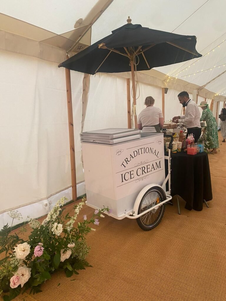 A charming retro-style ice cream cart that adds a classic, eye-catching touch to any event.